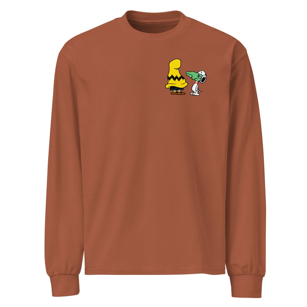 Homage to Vaughn/Mark Bode and Charles M. Schulz. Available in Black or Clay Longsleeve. Unisex Premium Heavyweight Long Sleeve Shirt. Relaxed fit and heavyweight 100% carded cotton fabric. Pre-shrunk
